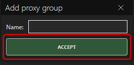 3. In the Name field, enter a descriptive name for the group (e.g., Oculus Proxies) to keep your proxies organized.4. Click Accept to save the new group.